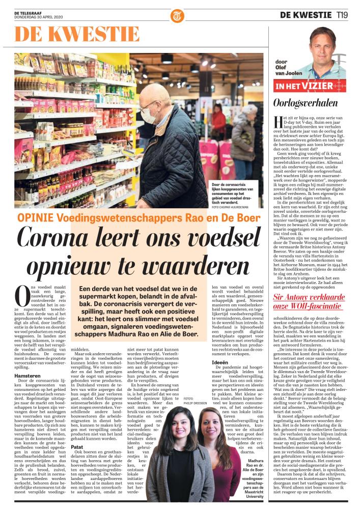 De Telegraaf: Corona leert ons voedsel opniew te waarden March 2, 2021August 2, 2022 by Madhura Opinion piece originally published in De Telegraaf in April 2020. Madhura Related Leave a comment Cancel reply Δ