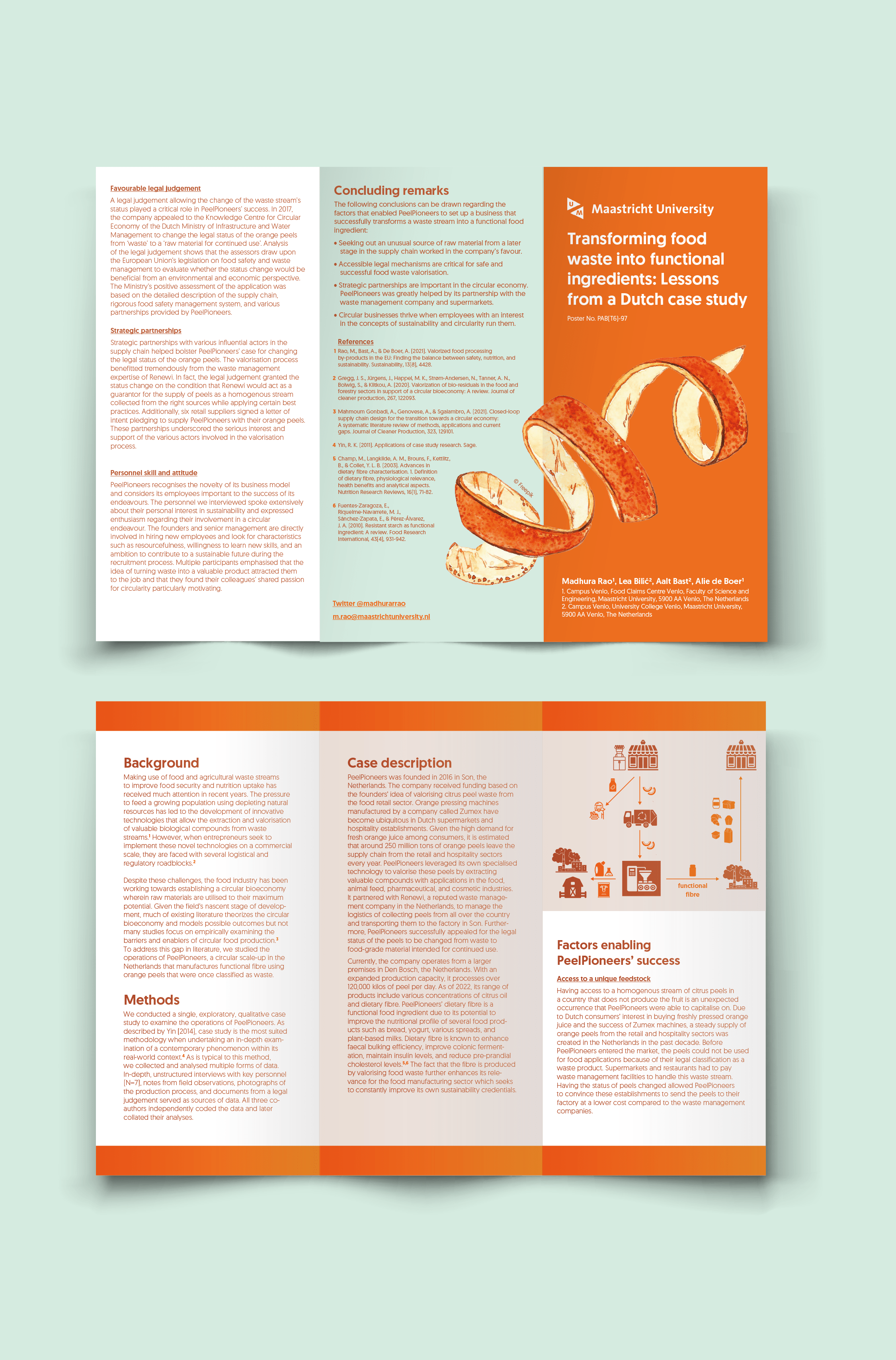 In December 2022, I attended the IUNS’ 22nd Congress on Nutrition in Tokyo, Japan. The six-day-long event brought together experts in the fields of food security, nutrition, and sustainability to pave the way for resilient food system of the future. My (co-written) abstract entitled ‘Transforming Food Waste into Functional Ingredients: A Dutch Case Study’ was selected for a poster presentation at the conference. Due to all poster sessions being changed to a virtual format, I decided to turn my poster into a brochure that could be distributed throughout the conference. The brochure (as seen below) was designed by Kirstyn Byrne.